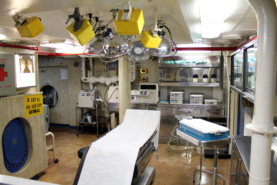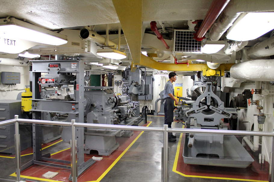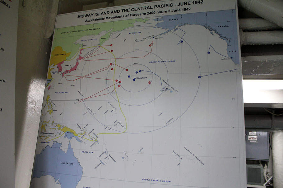 Die USS-Midway war von 1945 für 25 Jahre der größte Flugzeugträger der Welt und hat in Vietnam, Pearl Harbor sowie im Dessert-Storm-Krieg ihren Dienst verrichtet. Die Besatzung bestand ausschließlich aus 4500 Männern, die täglich bis zu zehn Tonnen Essen verspeist haben. Mit gigantischen 212000 PS und einem Kraftstofftank mit mehr als eine Millionen Liter fassungsvermögen zog sie so durch die Meere. Zu Spitzenzeiten waren bis zu 40 Flugzeuge auf ihr stationiert.