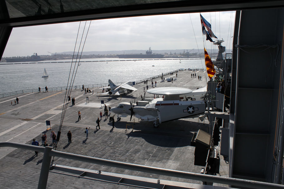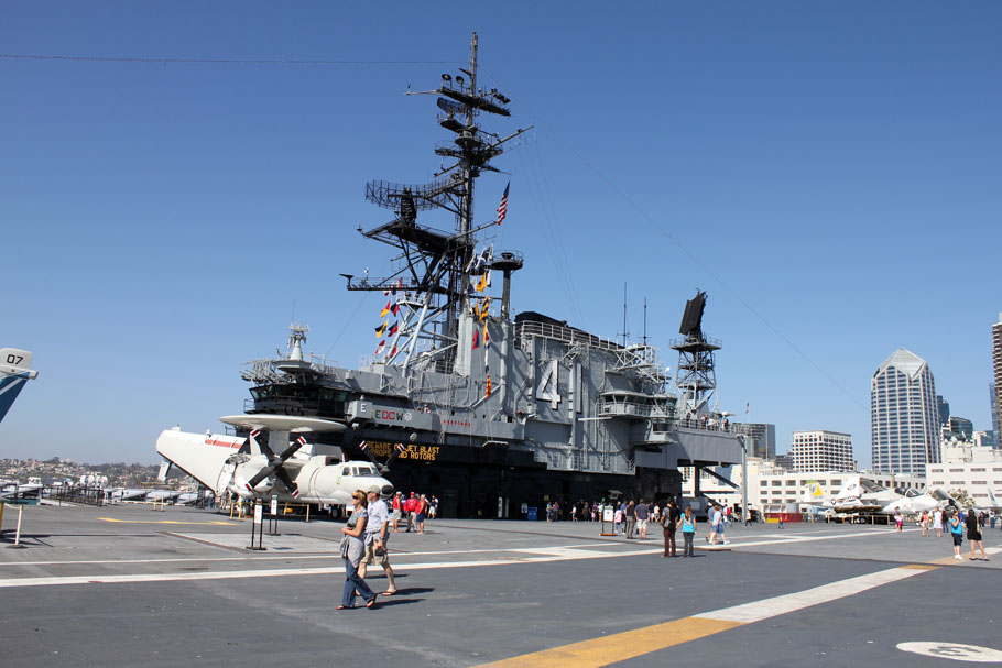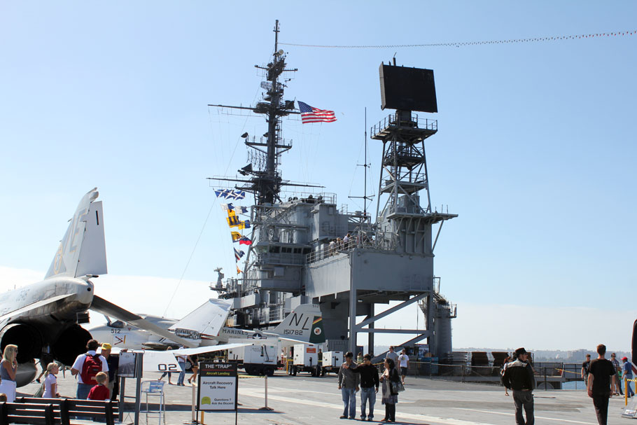 Gestern habe ich das USS-Midway Museum besucht. Dabei handelt es sich um einen stillgelegten Flugzeugträger der zum begehbaren Museum umgebaut wurde und im Hafen von San Diego ‚angelegt‘ hat. Der Besuch war wirklich verdammt interessant und zeitintensiv – man kann einfach so viel anschauen – da vergehen die vier Stunden für das Parkticket rum wie im nu. Zu den einzelnen Rundgängen gibt es sehr gut gemachte Audio-Guides in denen man Aussagen von ehemaligen Kriegsveteranen anhören kann. Passend dazu werden auch die einzelnen Stationen einfach mit allen nötigen Fakten erklärt.