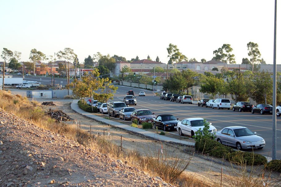Da ich vor einer Zimmerbesichtigung noch fast 20 Minuten Zeit hatte, bin ich einmal einen kleinen Erdwall nach oben gestiegen, um die Landschaft in der Gegend festzuhalten. Wirkt für uns fast eher wie eine Wüste. Im übrigen hat Photoshop bei diesen Bildern kräftig nachgeholfen! Diese Bildern entstanden in der Gegend die sich Mira Mesa nennt – die Firma ist von hier noch ca. 5 Auto-Minuten weg.