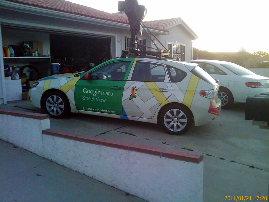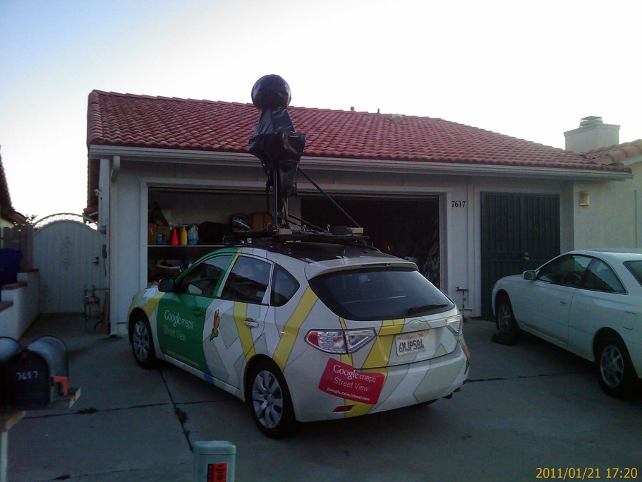 Zu aller erst geht es los mit zwei Bilder von einem Foto-Auto von Google Street View. Dieses habe ich bereits mehrere Male bei meinem Weg zur Arbeit umher fahren sehen. Wer weiß: Vielleicht bin ich ja bereits irgendwo im Internet zu sehen. Eines abends auf dem Heimweg vom Fitnesscenter bin ich einen anderen Weg gefahren als sonst und da habe ich das Auto direkt vor einem Haus geparkt gesehen. Da noch hell war musste ich das gleich einmal festhalten.