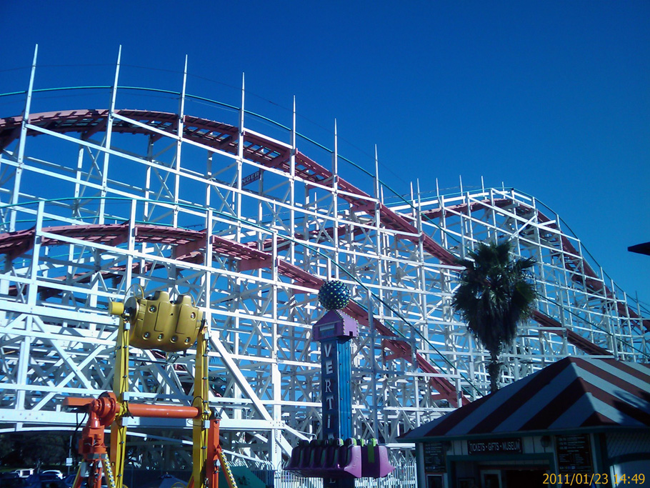 Die nächsten beiden Bilder (Strand und einmal Achterbahn) zeigen den Mission Beach sowie den dazu gehörenden Vergnügungspark. Da war ich etwa vor drei Wochen mit zwei Geschäftskollegen und ihren Freundinnen unterwegs. Es war ein sehr schöner Tag, als wir die Flyer der Immobilienfirmen durchgesehen haben. So ein Haus am Strand kostet bis zu 13 Millionen Dollar – da muss ich wohl noch etwas sparen 🙂 Die Fahrt auf der 1926 gebauten Achterbahn war auch ein richtiger Spaß, denn der Zustand war sicher auch schon einmal besser. Davor und danach waren wir dann noch bei Colin Zuhause und haben Football mit ein paar Cocktails genoßen!