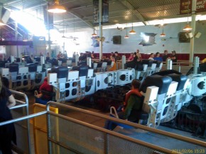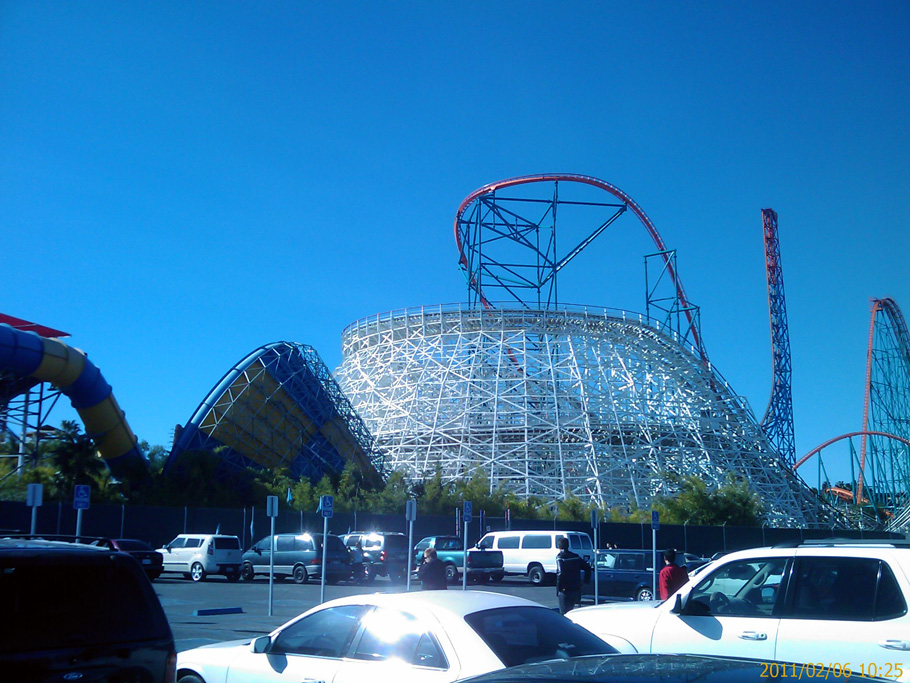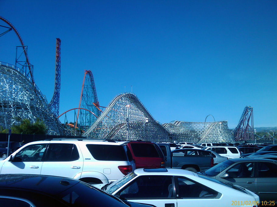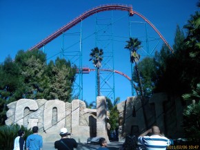 Die anderen Bilder von Achterbahnen und dem Parkeingang stammen vom Freizeitpark Six Flags Magic Mountain. Dieser liegt ca. 30 Autominuten nördlich von Los Angeles und war am Sonntag dank dem Superbowl völlig leer. Die Zeiten zum Anstehen lagen zwischen einer und zehn Minuten – besser kann es echt nicht mehr laufen! Der Park ist viel viel kleiner als der Europa-Park, besteht dagegen aber fast ausschließlich aus Achterbahnen. Die beiden besten Achterbahnen waren an dem Tag leider außer Betrieb, trotzdem hatte ich mit meinen zwei Mitbewohnern die mit von der Partie waren viel Spaß. Dieser Freizeitpark ist nun nach dem Europa-Park mein absoluter Favorit. Solch kranke Achterbahnen findet man wohl nur hier. In manchen steht man, in manchen liegt man und in anderen wiederum verliert man beim Fahren die Orientierung voll ganz – es hat sich einfach alles so gedreht, dass man die Schienen nicht mehr sehen konnte! Ganz klassisch gab es dann an diesem Tag Burger mit Pommes zum Essen 😉