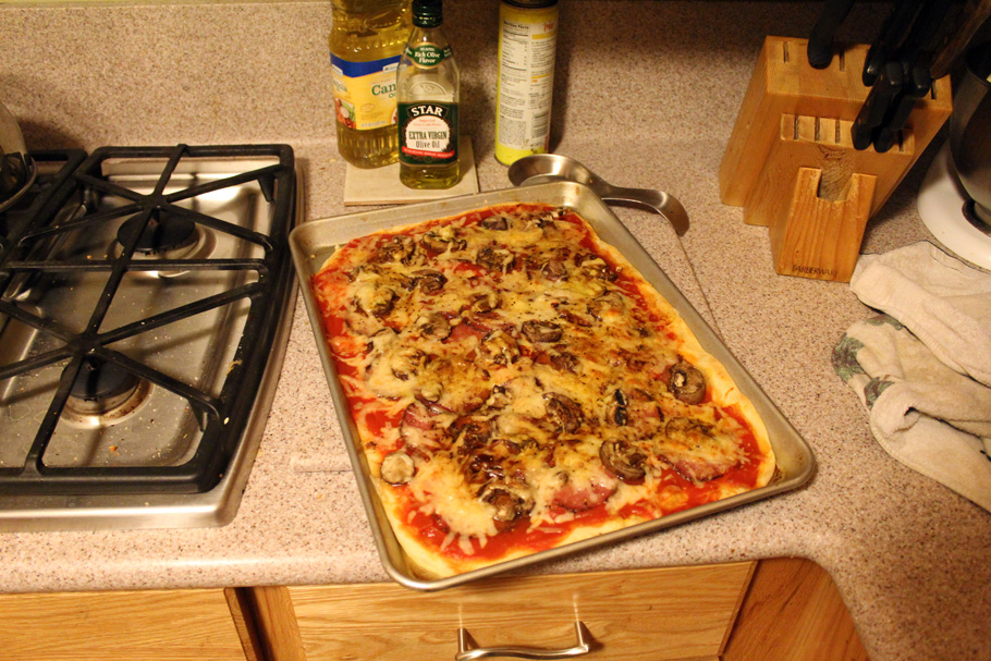 Apropos Essen! Auf den beiden letzten Bildern habe ich mich etwas im Kochen probiert. Raus gekommen sind zwei Pizzen, sowie eine große Portion Tortellini mit Salat. So viel sei gesagt: Es hat allen im Haus geschmeckt und ich hab nun einen neuen italienischen Spitznamen: Mr. Skrabalini 🙂
